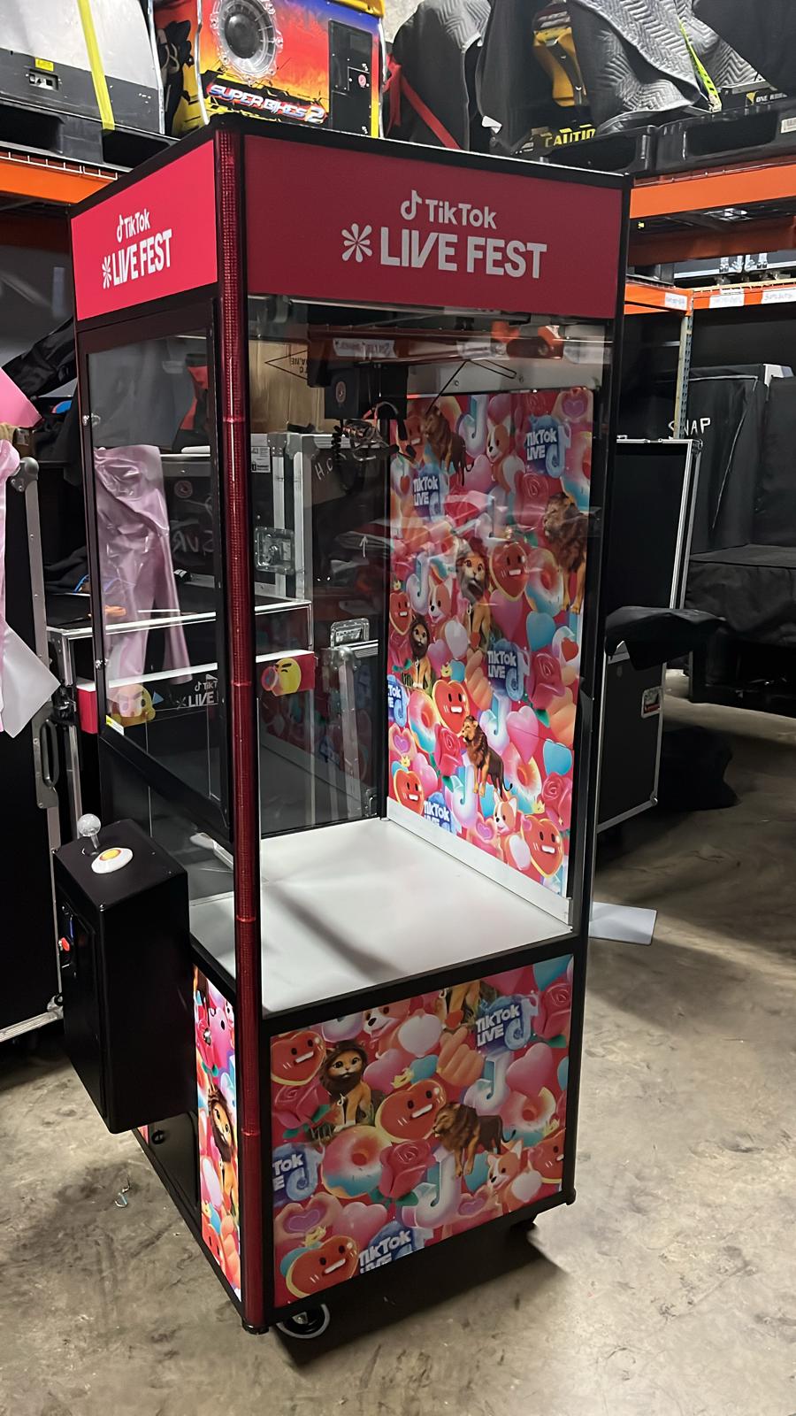 2. Custom Vinyl Graphic Wraps: Top Marque 27”W X 6.75″H, (2) Side Marquees 24.25″W X 7.5″H, (2) Bottom Side Panels 23.5″W X 19.25″H, Prize Door 10.5”H X 7.25”W, Rear Inside Wall 35.25″H X 26.25″W