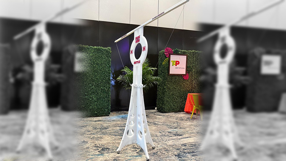 Prepare for battle! Grab a friend and play our fast paced Hook & Ring Battle game. Aim for the hook as you swing the ring. The first one to land the ring on the hook wins. This game is 7′ tall and battery powered with customizable, color-changing LED lights. Branding options available. This game can also be played without the battery for Sabbath friendly fun.
