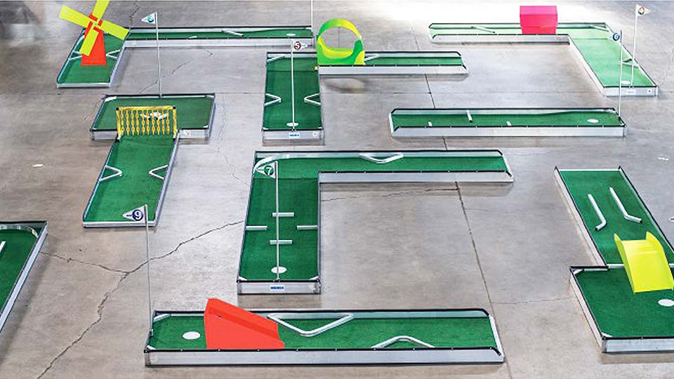 Dimensions: 9 hole express 20′ x 20′, 9 hole deluxe 20′ x 30′.