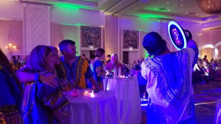 Introducing the mobile selfie photo booth. Using a portable, color changing LED ring light, this portable photo booth can go anywhere at your event; the cocktail hour room, the main room, from table to table, or even on the Dance Floor! The Ring Light displays a rainbow of colors while our Photo Booth Attendant Roams, and then when your guests take a photo the ring light turns solid white for great photos! Customized designs are created with your logo which are instantly sent to your phone, email, and social media. Use digital props like snapchat and we offer an optional instant print service. Our Mobile Selfie Booths make great additions to photo booths or work great as stand alone photo entertainment. We provide a trained attendant to run this mobile photo booth. We own the best collection of quality photo booths available for rent in Fort Myers, Florida.